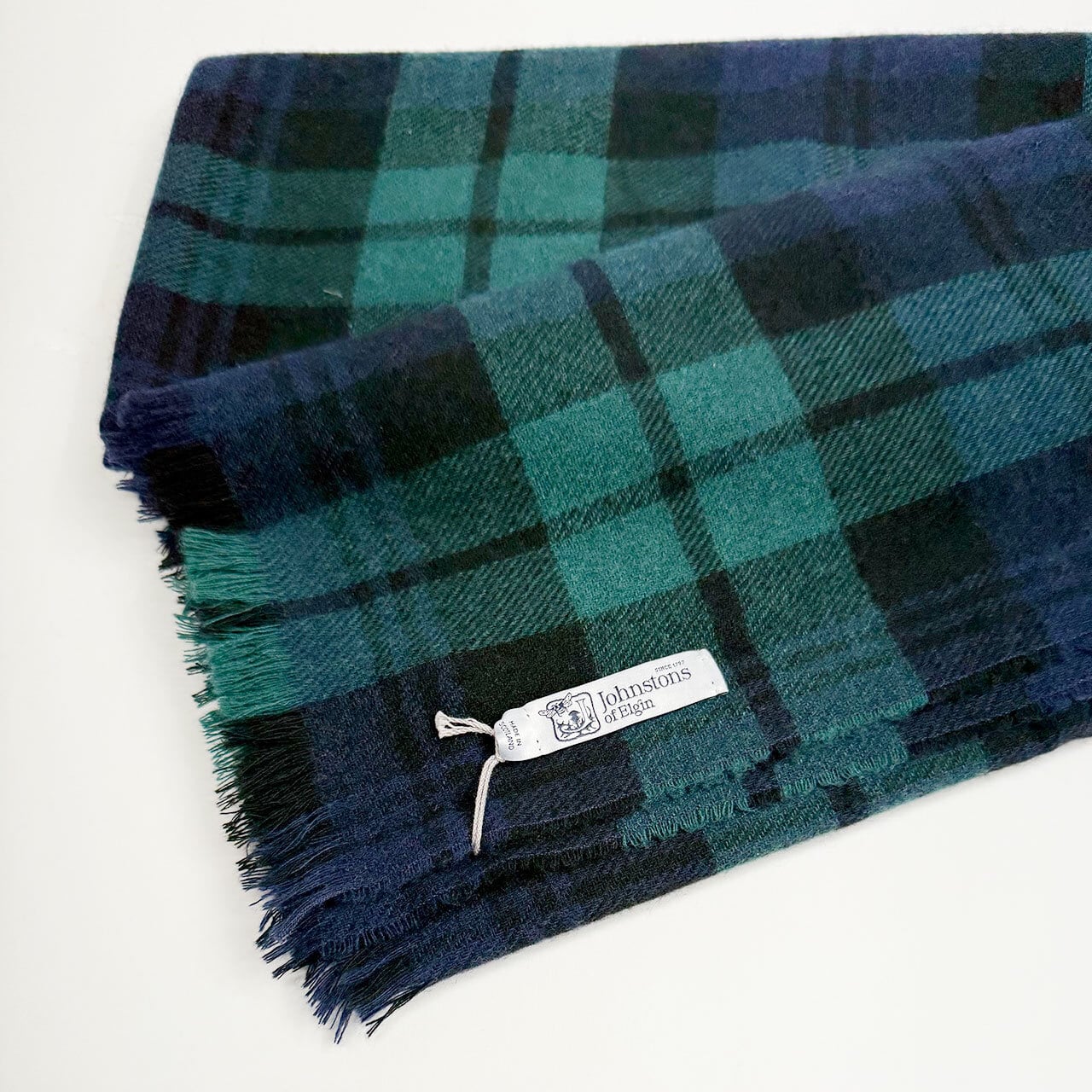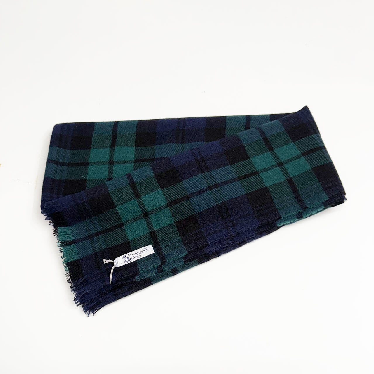 【BLACK FRIDAY】JOHNSTONS正規品:ブラックウォッチストール/カシミア100%/軽量/ユニセックス/チェック柄/ギフト/プレゼント